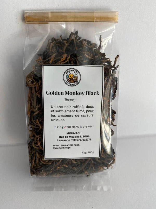 La province chinoise du Yunnan est mondialement connue pour ses thés noirs prestigieux, cultivés dans un environnement montagneux propice à des récoltes de qualité exceptionnelle. Le Golden Monkey Black, riche en « tips » dorés, fait partie des variétés les plus recherchées par les amateurs de thé.Son infusion dévoile une saveur délicate, légèrement sucrée, avec une subtile note fumée. Raffiné et aromatique, ce thé accompagne parfaitement chaque moment de la journée, qu’il s’agisse de détente ou de partage.