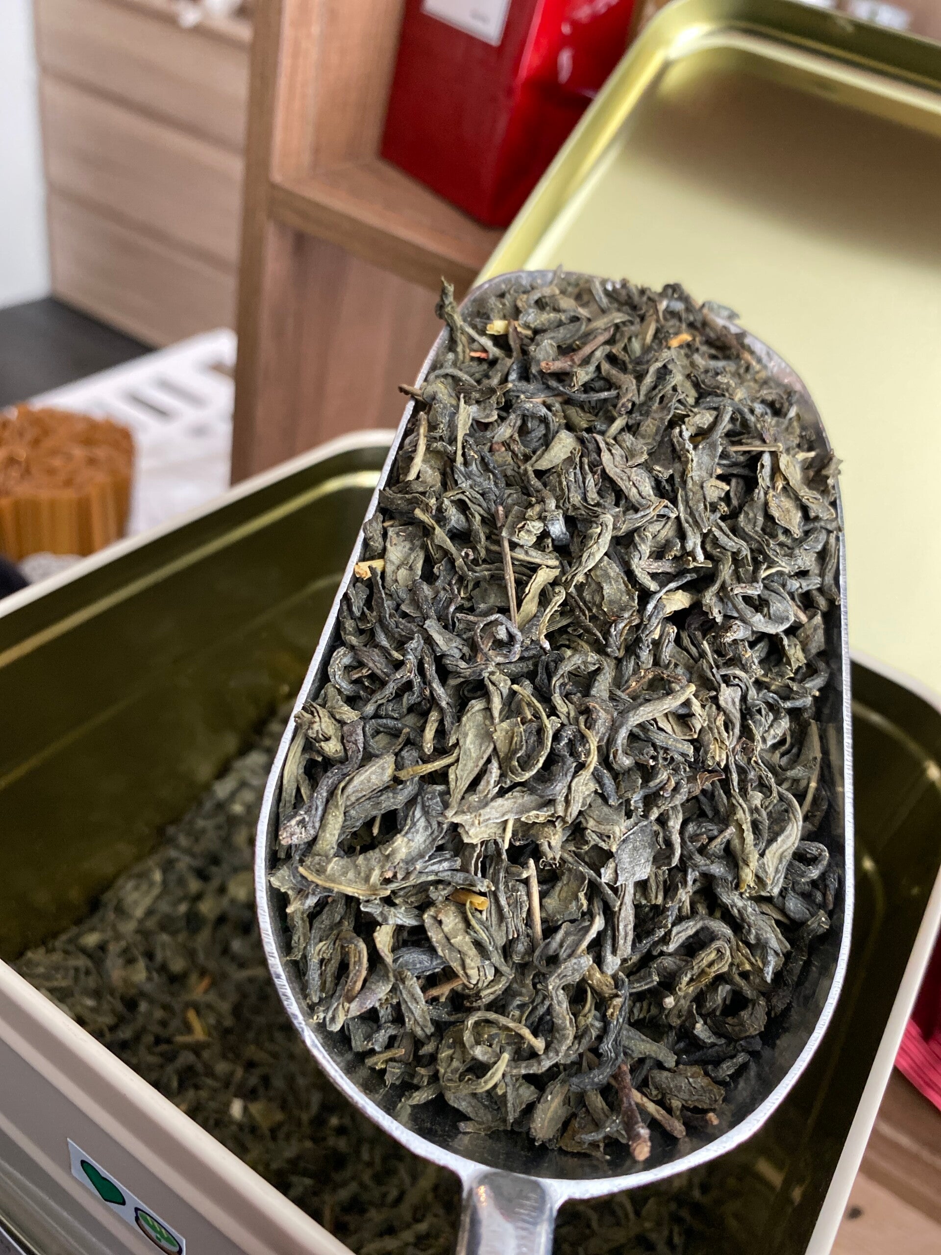 Ingrédients: thé vert en feuilles parfumé au jasmin