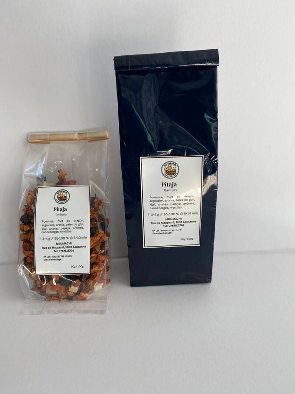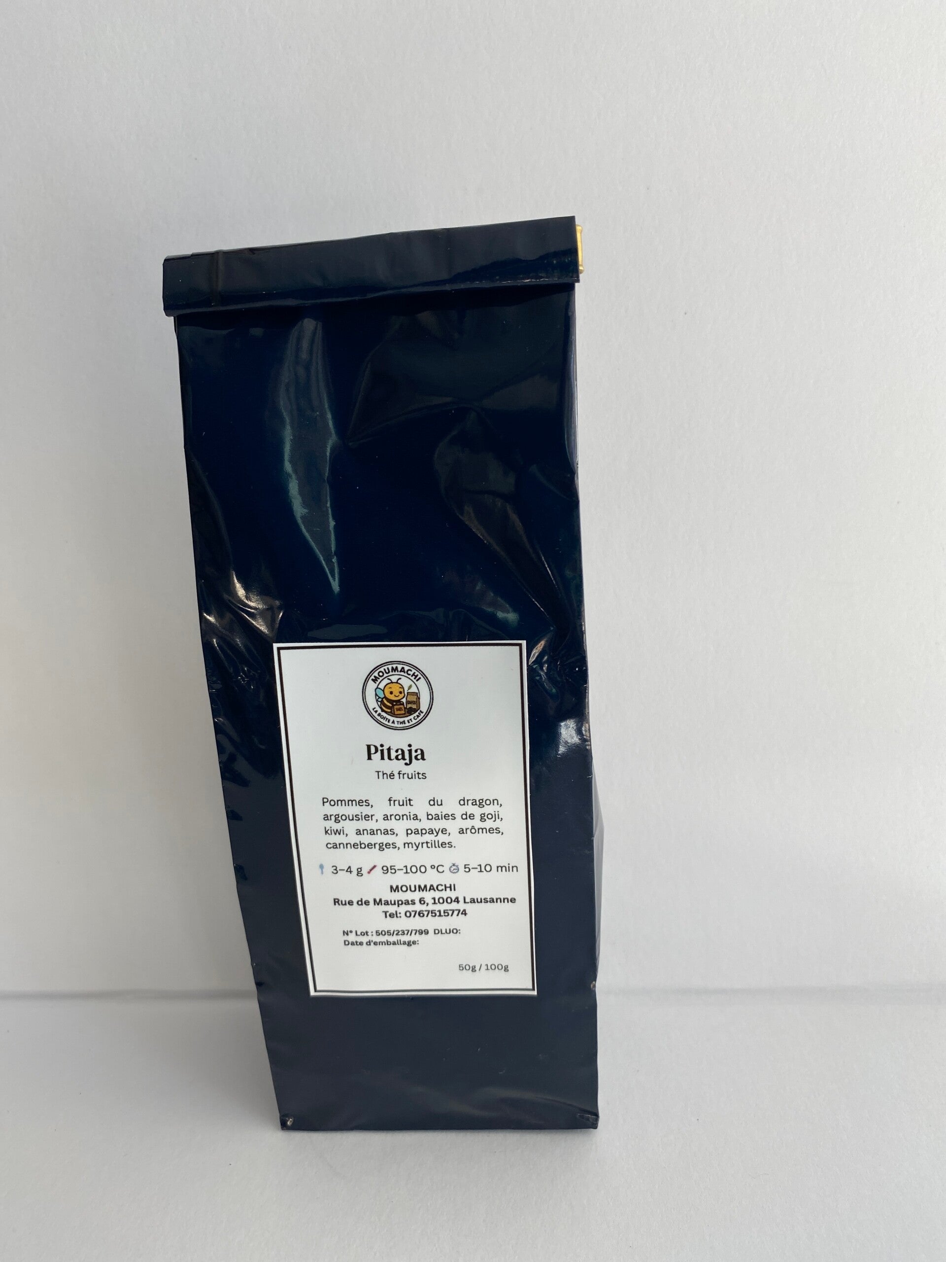 Ingrédients: pomme, fruitdu dragon (pitaya), argousier,aronia, baies de goji, kiwi,ananas, papaye, arôme, canneberges, myrtilles