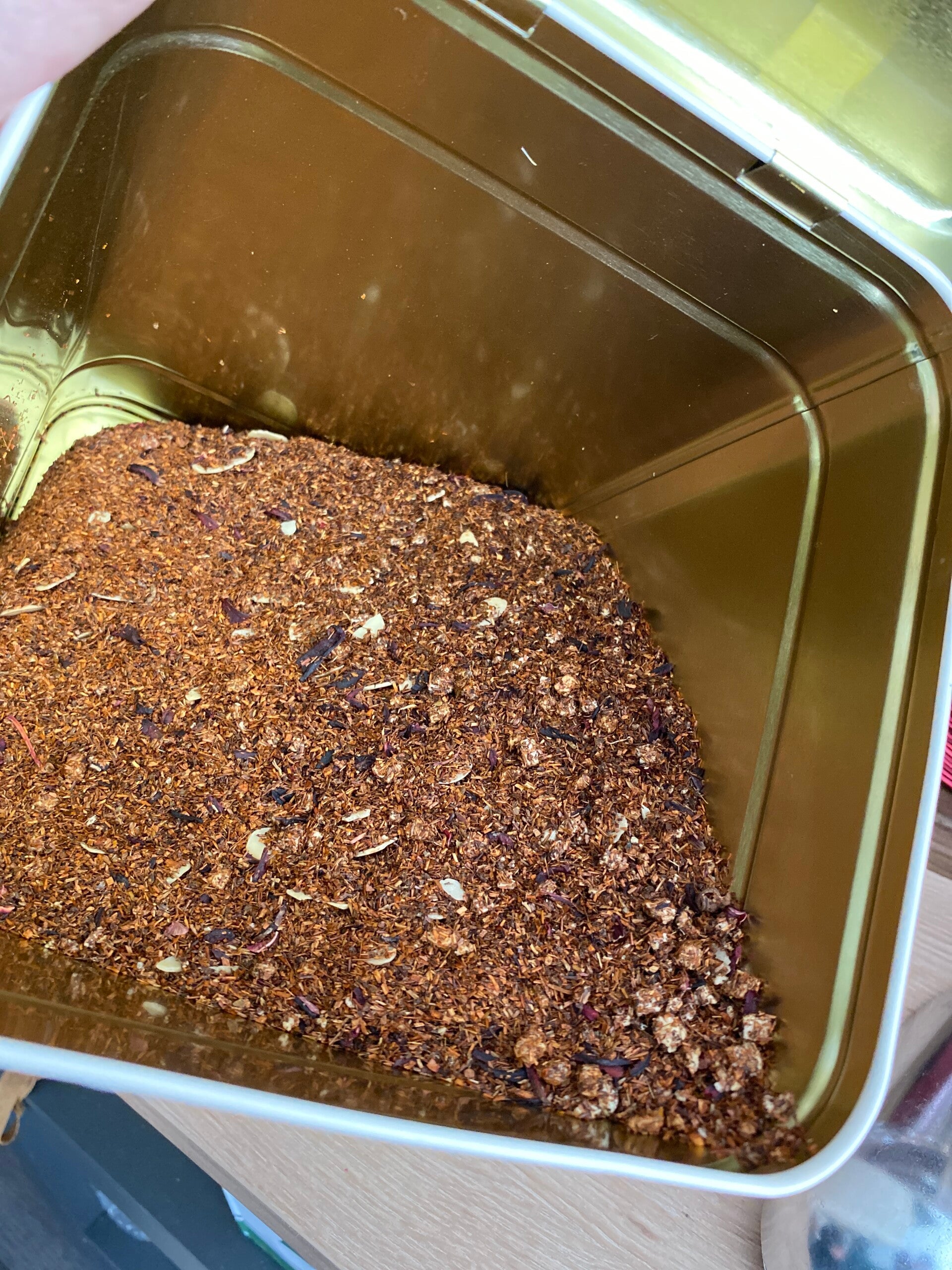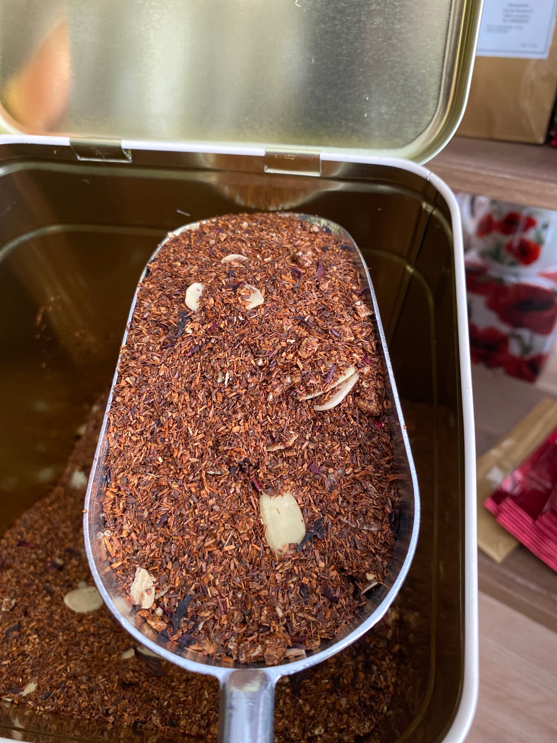 Ingrédients: tisane rooibos, cannelle moulue, amandes effilées,