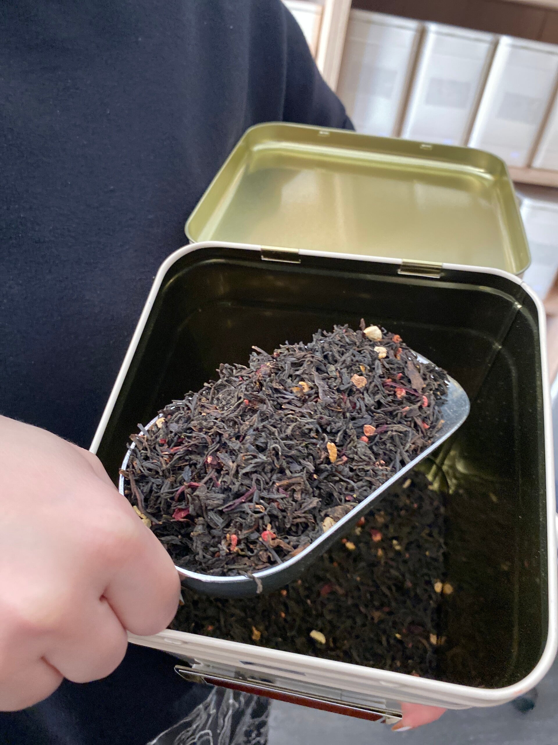 Ingrédients: thé noir en feuilles, ananas confit, arôme, pétales de