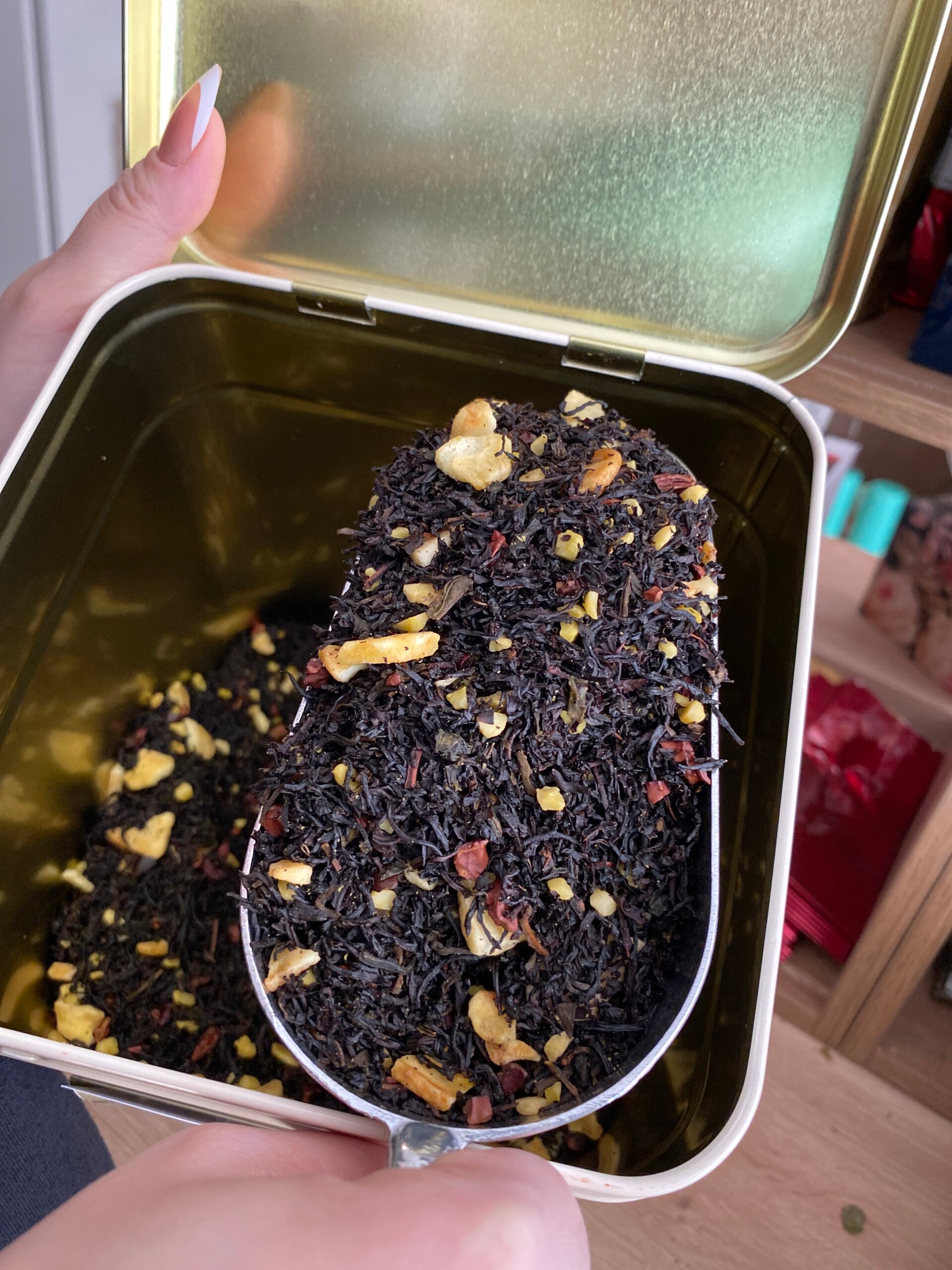 Un thé noir gourmand, enrichi de chips de banane, de fèves de