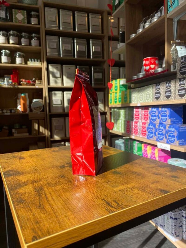 d'orange. Enrichi d'hibiscus, d'écorces d'orange, de framboises et