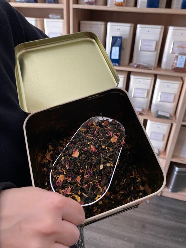 tournesol et du bleuet rose. Son parfum subtil, relevé d'une note de vanille et d'un accent d'agrumes, offre une infusion au goût raffiné de goji et de bergamote.